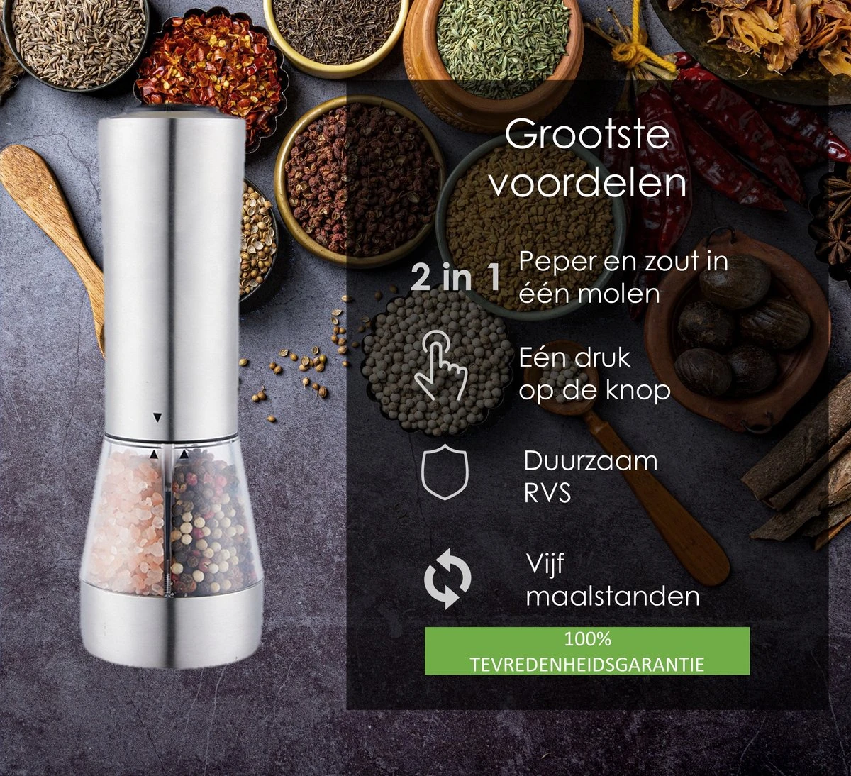 Voordelen KROMS peper- en zoutmolen