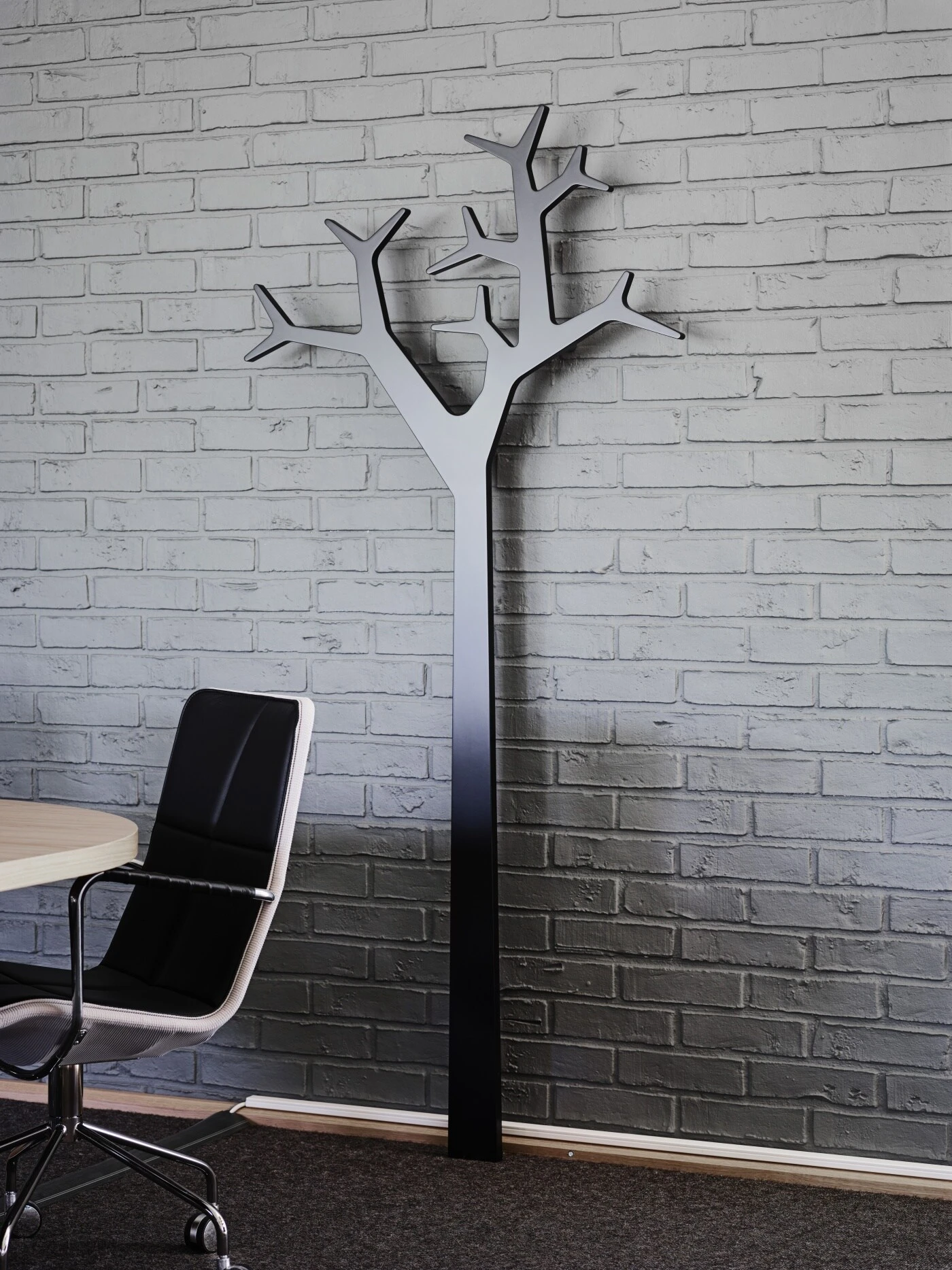 Tree Wall van Swedese. In deze boomvormige kleerhanger heeft Katrin Olina in samenwerking met Michael Young haar eigen beeldtaal ontwikkeld op de grens tussen werkelijkheid en onderbewustzijn. Tree Wall is zowel een functioneel meubel als een mooi interieurdetail. Ook verkrijgbaar in een kleinere maat.